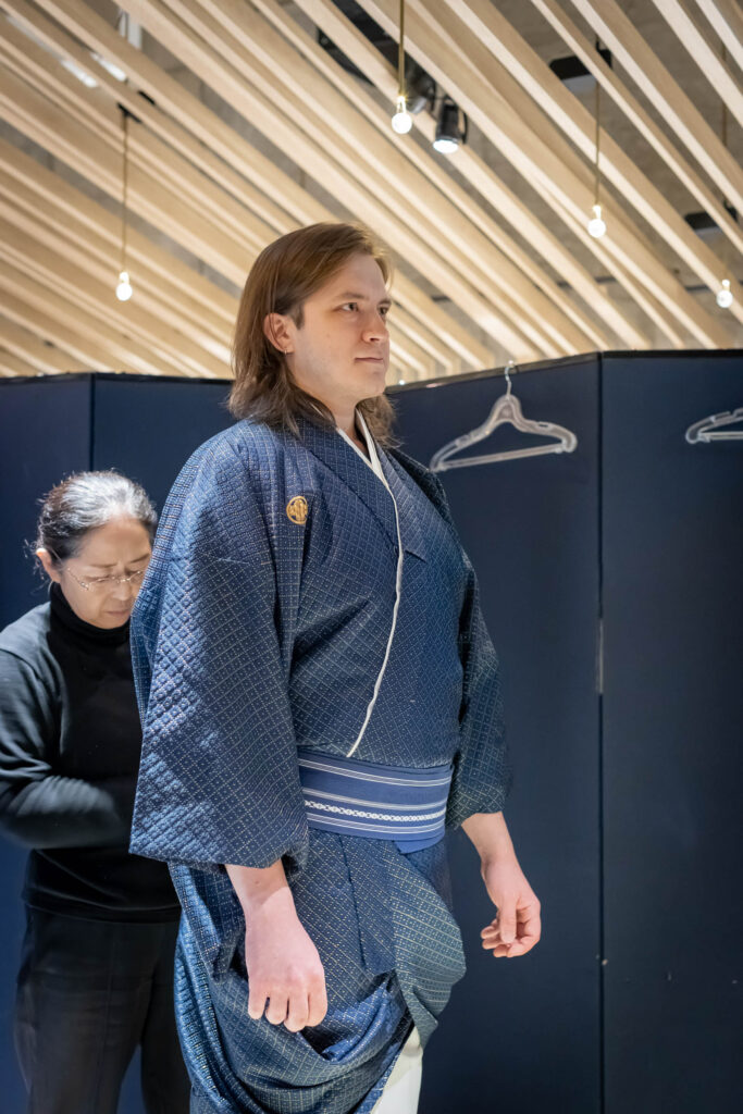 Putting on a men’s kimono is much simpler than the women’s style—it takes only about 10 to 15 minutes. But once the obi is tightened around your waist, you feel instantly sharper, like your posture straightens on its own.