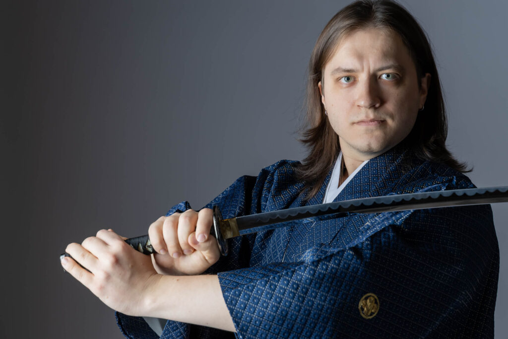 We also have a prop sword you can use for the photos. You can get that samurai vibe even without wearing armor. It definitely gives you a little boost of excitement. And with some dramatic lighting and shadows, the photos come out really cool.